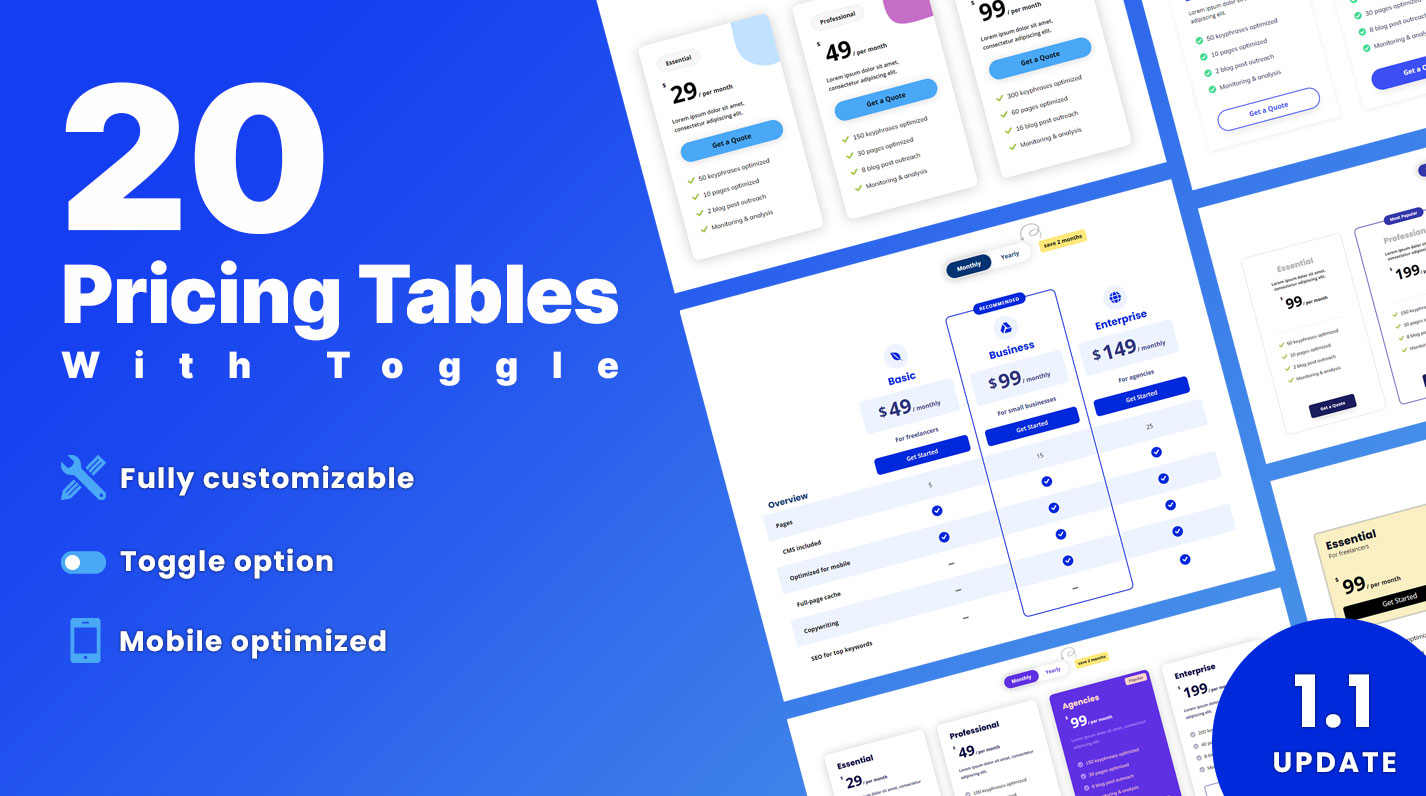 - 20 predesigned pricing tables