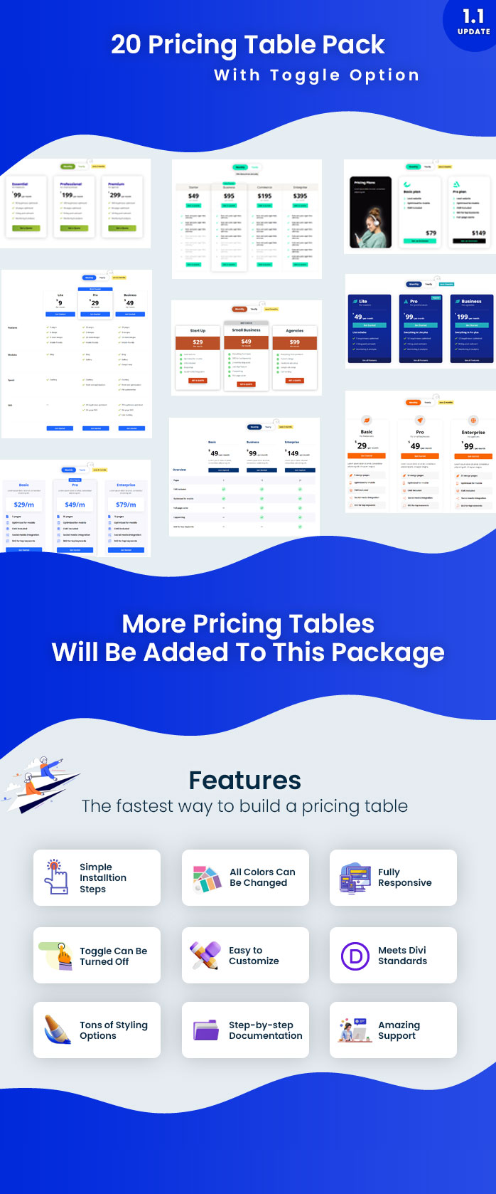 - Newly designed pricing tables will be added to this package