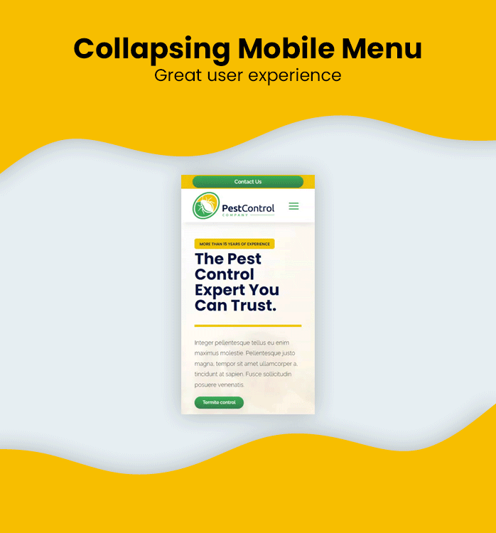 Pest Control comes with a collapsing mobile menu that will collapse the mobile sub-menu items. You can expand them by clicking on the toggle. This is a great way to increase your user experience.