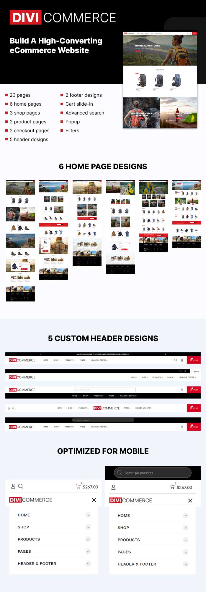 DiviWoocomerce is an eCommerce Divi child theme for modern brands. Perfect website for any type of WooCommerce shop. This is a fully customizable Divi template designed to get your webshop up and running in no time.