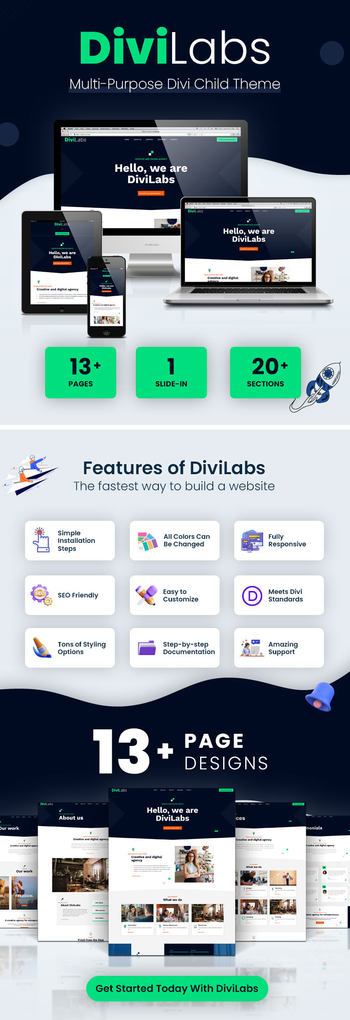 DiviLabs is a multi-purpose business Divi child theme for modern brands. Perfect website for agencies, consultants, web designers, and marketers. This is a fully customizable Divi template designed to get your website up and running in no time.