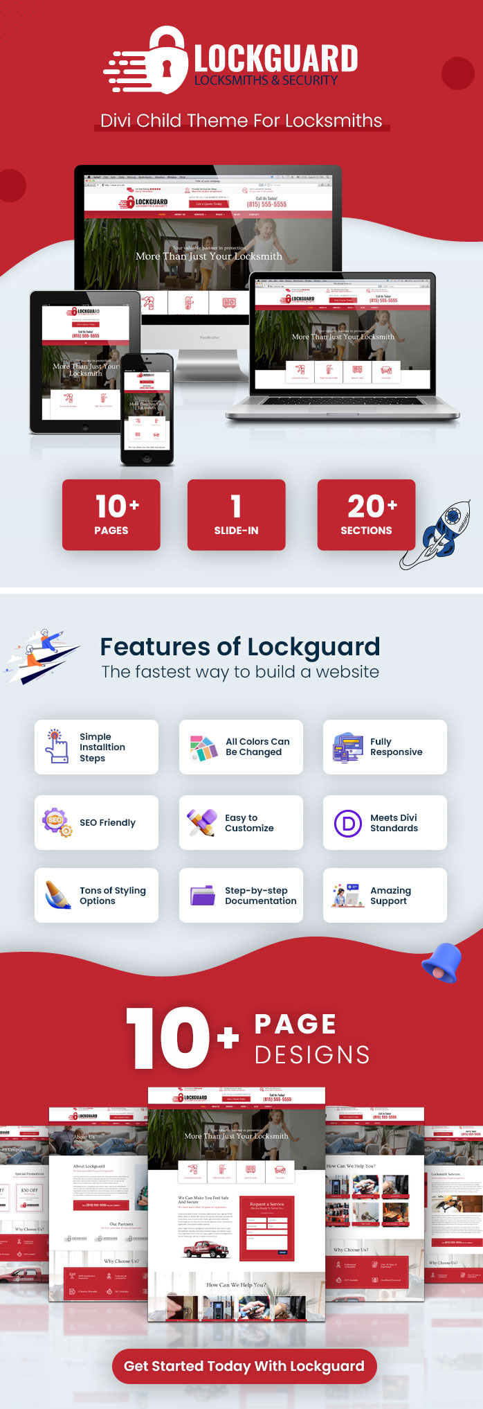 Lockguard comes with 10 beautifully designed pages and tons of unique features. This is a fully customizable Divi template designed to get your website up and running in no time.