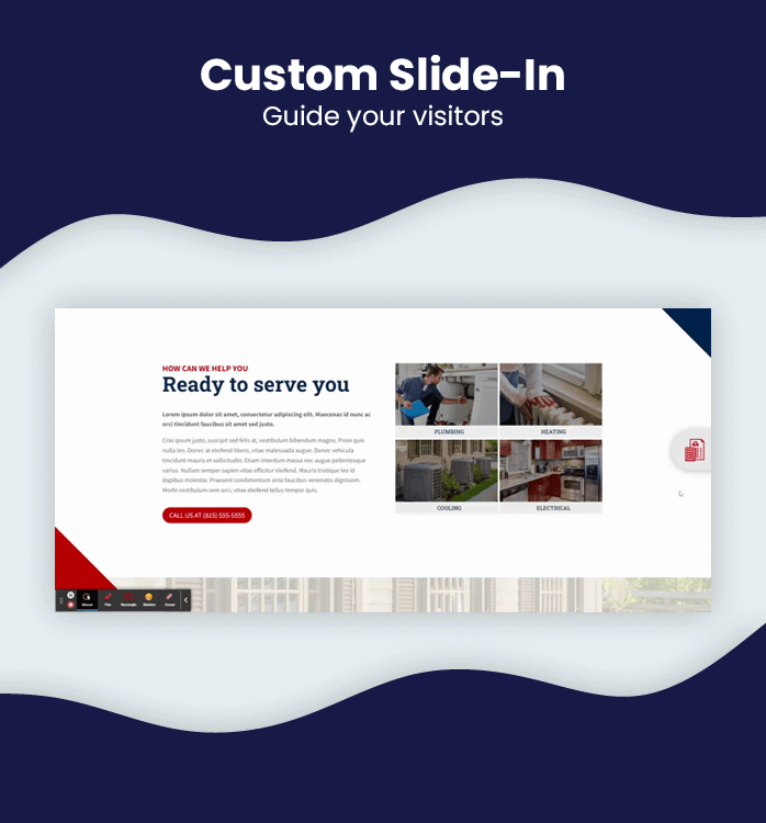 To increase your conversions DiviHvac comes with an inbuild slide-in that will scroll with the page.