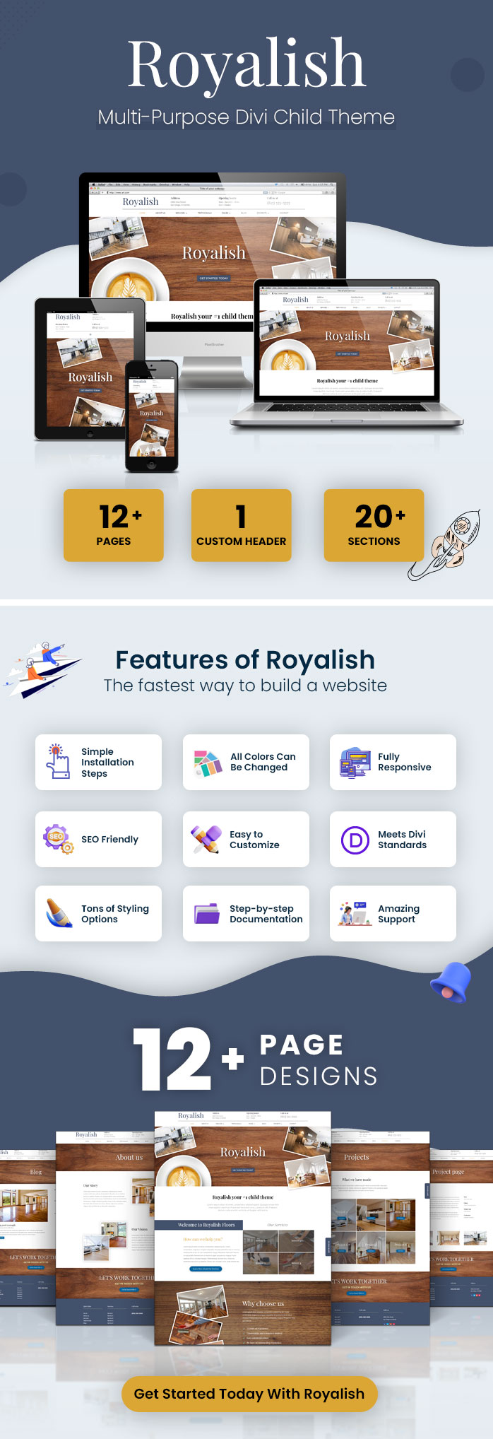 Royalish is a multi-purpose business Divi child theme for modern brands. Perfect website for agencies, consultants, web designers, and marketers. This is a fully customizable Divi template designed to get your website up and running in no time.