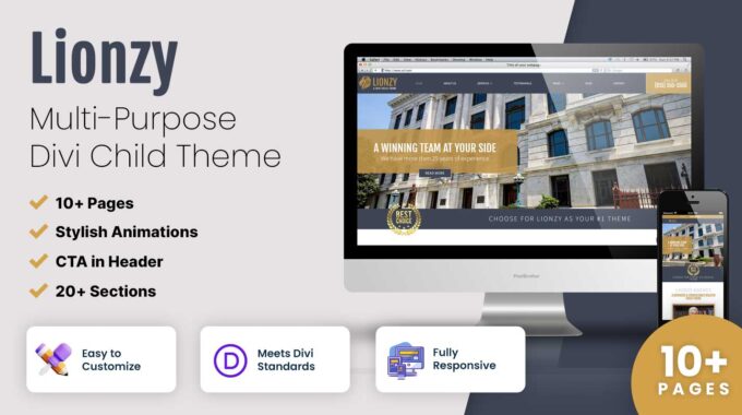 Lionzy comes with a call to action in the menu and a trust icon below the header image. This way your visitors have an easy way to get in touch and it builds up trust which will increase your conversion rate.