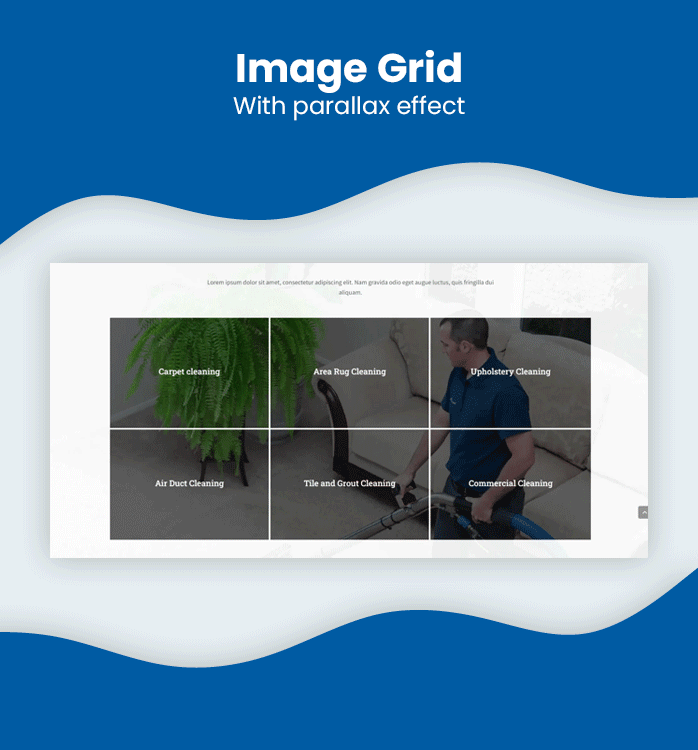On the home page, you find a beautifully designed image grid. When you hover over a column/service the background image will change, this will give a great effect on your services.