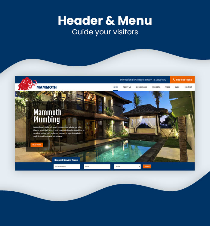 Mammoth comes with a custom-designed header & menu. You can customize any color of this header and place additional modules in it.