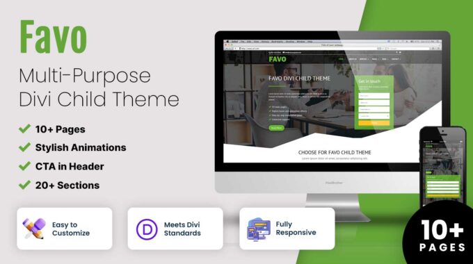 Favo is a multipurpose Child Theme for Divi by Elegant Themes. Favo is primarily designed for small businesses in mind.