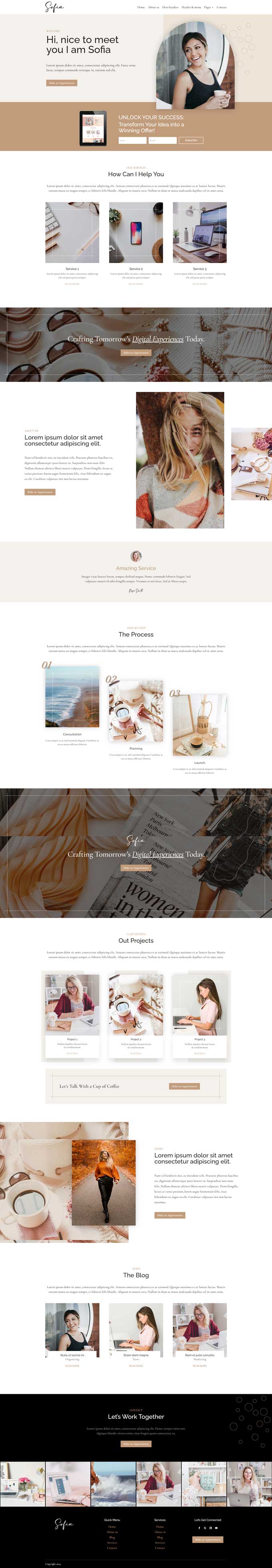 Sofia is a stylish and feminine Divi child theme with unique design elements to share your story. It brings the high-end design vibe to