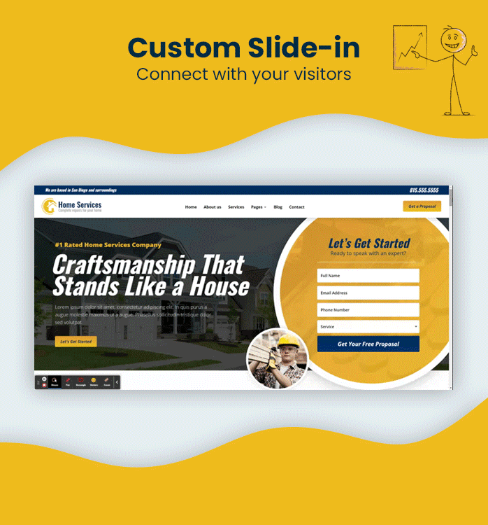 When you scroll down the page a slide-in will appear on the right side. This is a great way to attract your visitors to contact you.