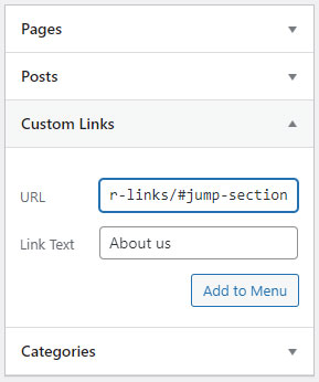 I have added #jump-section after the destination URL, the words jump-section can be anything you want.