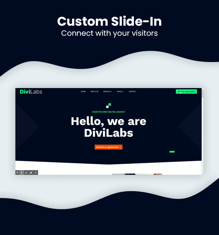 DiviLabs comes with an inbuild slide-in. you can trigger this slide-in with any link or button. You can easily customize this slide-in.