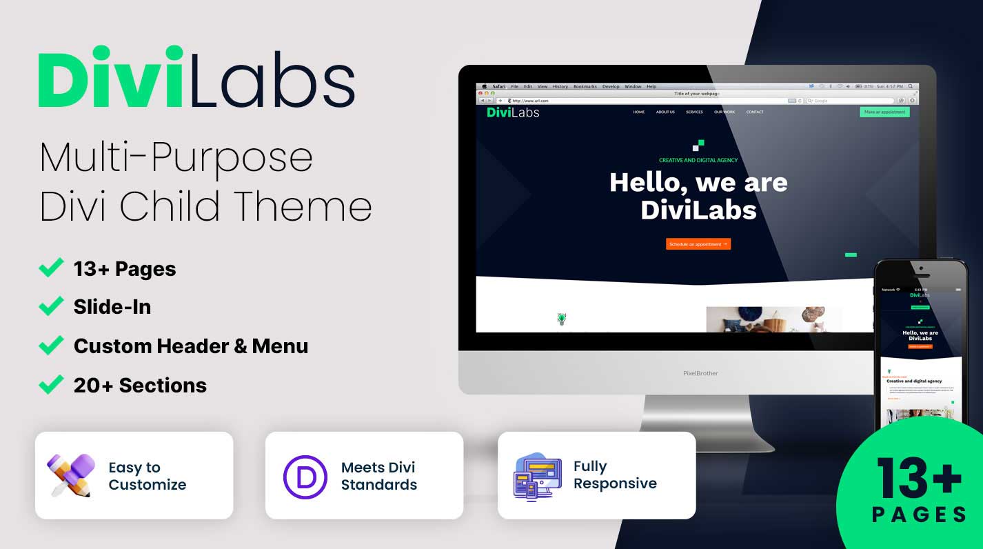 DiviLabs is a multi-purpose business Divi child theme for modern brands. Perfect website for agencies, consultants, web designers, and marketers. This is a fully customizable Divi template designed to get your website up and running in no time.