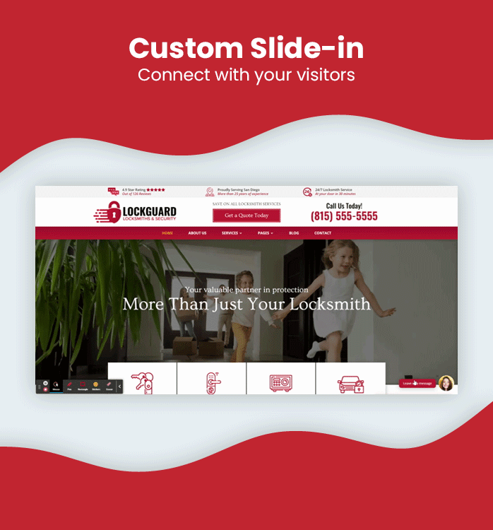 This slide-in will grab the attention of your visitors and encourage them to leave a message. You can easily customize this slide-in just from the visual builder!