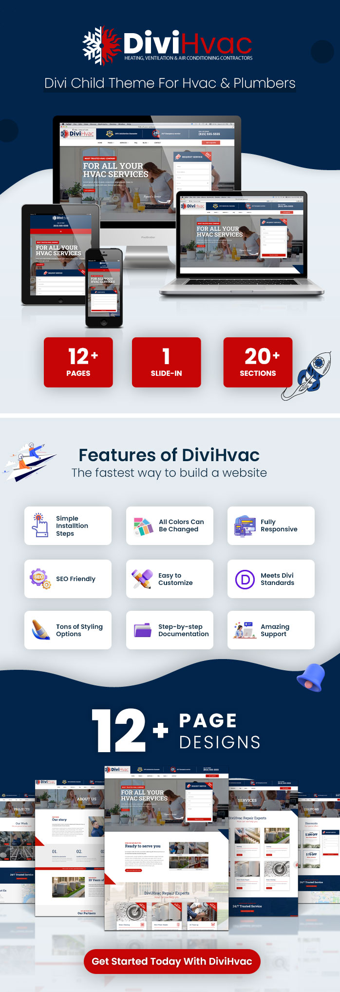DiviHvac is a multipurpose Divi child theme specially designed for services/contractors companies like HVAC, appliances and plumbers, and any other services-related website.