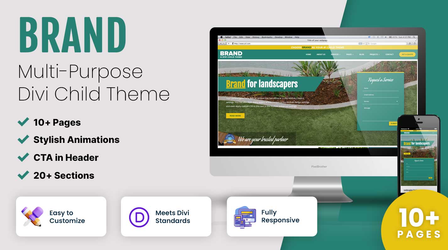 Brand comes with a call to action in the menu and a contact form in the header. This way your visitors have an easy way to get in touch with you which will increase your conversion rate.