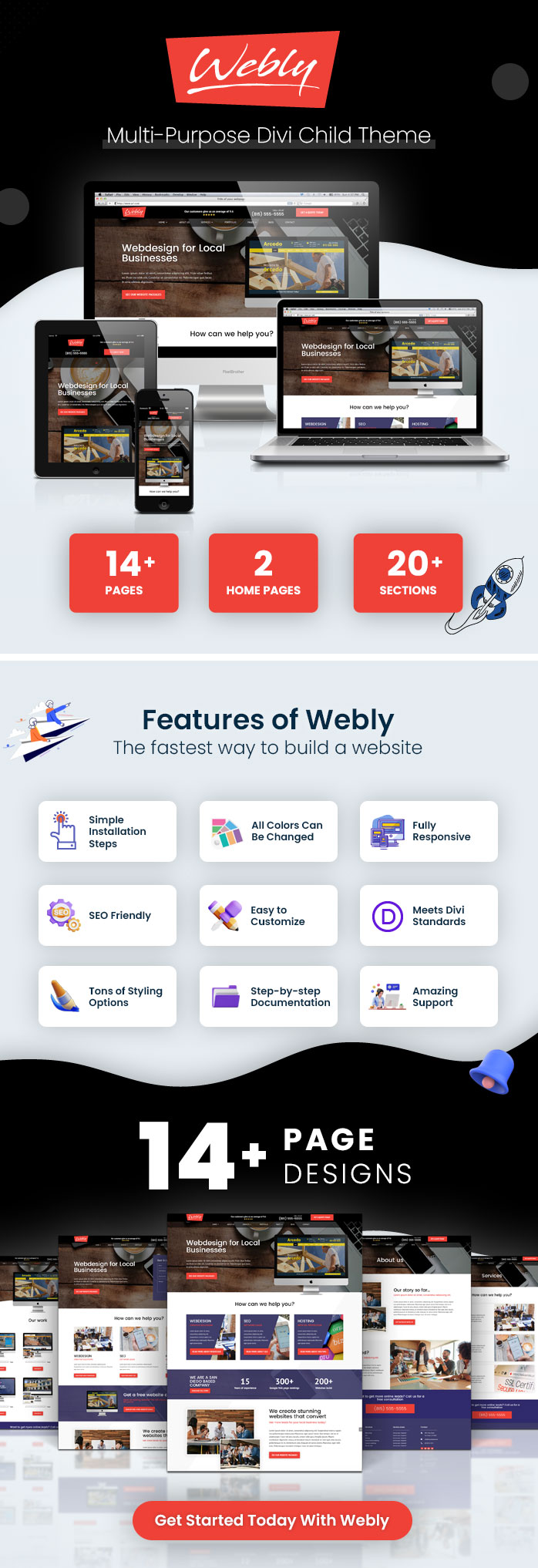 Webly is a multi-purpose business Divi child theme for modern brands. Perfect website for agencies, consultants, web designers, and marketers. This is a fully customizable Divi template designed to get your website up and running in no time.
