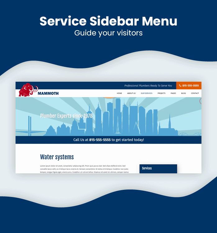 Your customers can easily navigate between your service pages with this custom-made side menu.