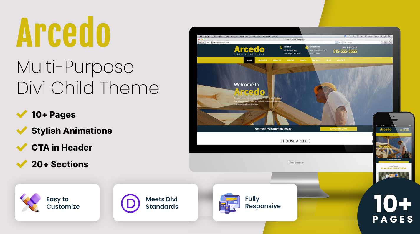 Arcedo is a multipurpose child Theme for Divi. Arcedo is primarily designed for small businesses in mind such as contractors, remodels & renovations, plumbers, roofing, and landscapers.